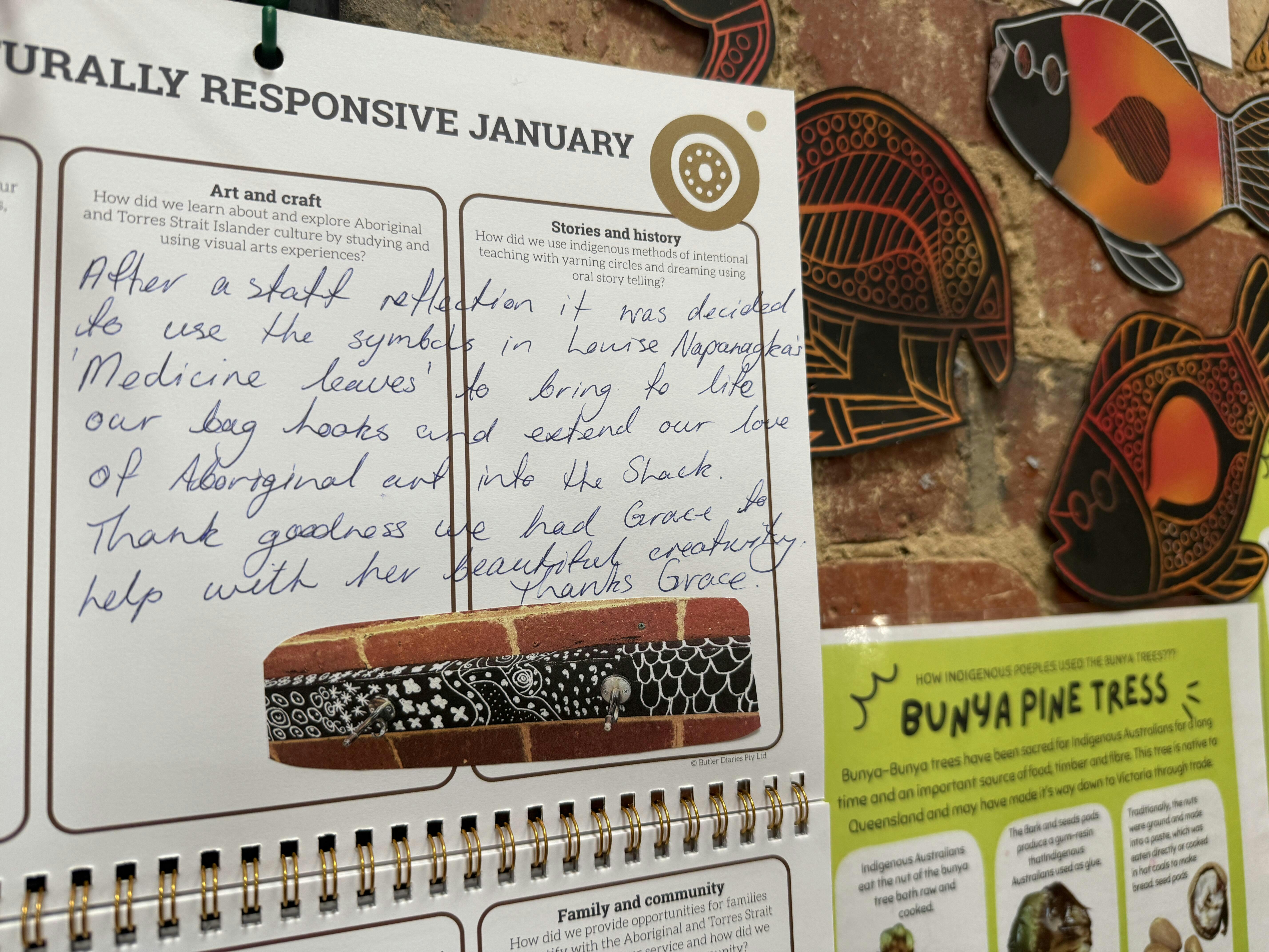 It is a monthly prompt to reflect and record how you have âbuilt inâ cultural responsiveness into your program and practice rather than simply âbolting it onâ*. Importantly, it steers away from the âtick a boxâ cultural planning that can often occur in services by prompting thoughtful consideration of environments and experiences with a visual planner.