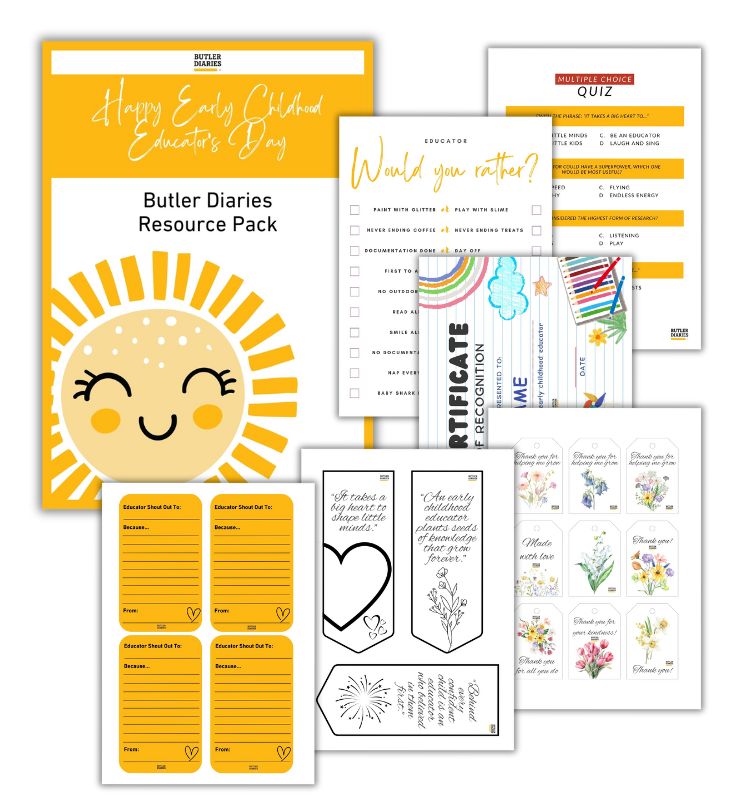 Free Resources, Activity Ideas, Educator Gifts, and More, for Early Childhood Educators' Day at Butler Diaries