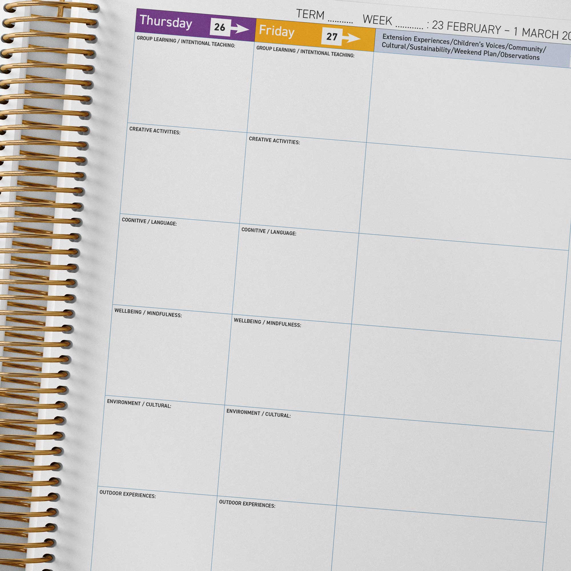 • 2026 Weekly Programming and Reflection Child Educator Diary - Hard Cover Spiral Bound (This item)